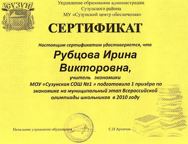 2009-2010 уч. г. - Бакулина Виктория - победитель муниципального этапа ВОШ по экономике